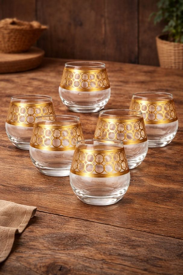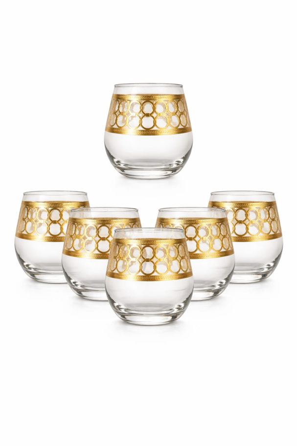 Set 6 pahare whisky din sticlă cu decor auriu