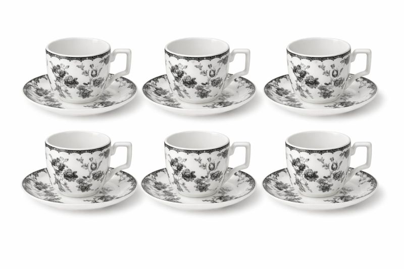 Completează momentele de relaxare cu un set elegant de cești pentru cafea și ceai, ideal pentru 6 persoane. Realizat din ceramică de calitate, acest set impresionează prin designul floral sofisticat în nuanțe de alb și negru, oferind un plus de rafinament oricărei mese.